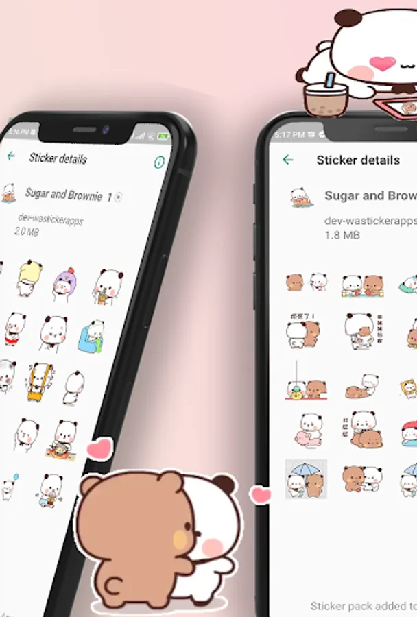 Get the most valuable sugar and brownie sticker gif for WhatsApp application with something great milk mocha stickers animation and WAStickerApps peach and goma love animated stickers with free options just for you michiandboo and their sugar brownie stickers, cute couppies stikers!