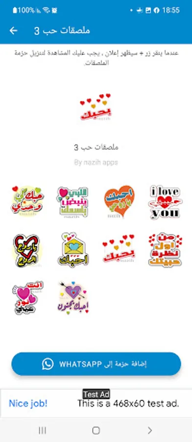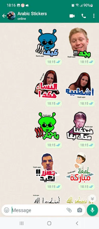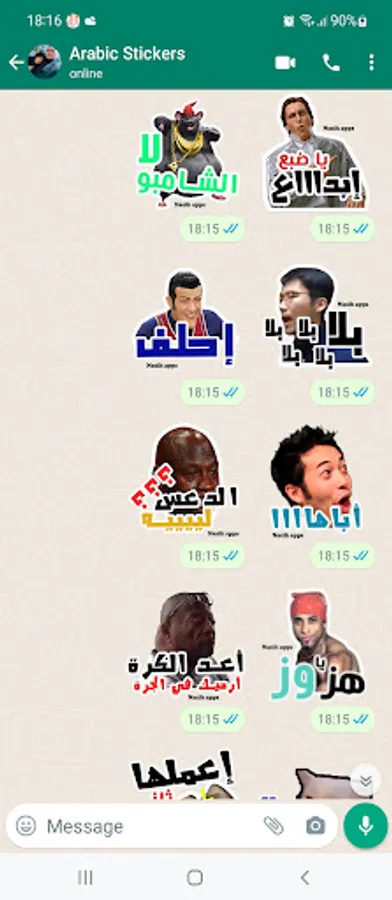 If you are always looking for new Arabic stickers for Whatz app, Arabic Stickers app is for you; We have organized Arabic sticker packs for wastickers into categories so that you can easily find what you are looking for and add them directly to your Whatz. We are constantly updating the app with new categories, arabic khaleeji sticker packs, funny stickers, egyptian series and movies stickers for arabic stickers WASticker app. You will also find Arabic Islamic stickers, funny stickers, love stickers, and many sticker packs as rose stickers in the application, and we have also added funny Arab and Gulf animated stickers for you.