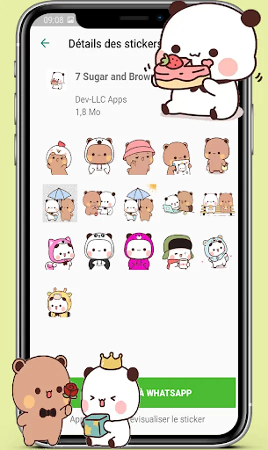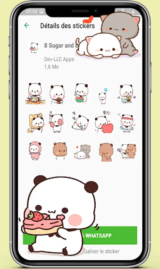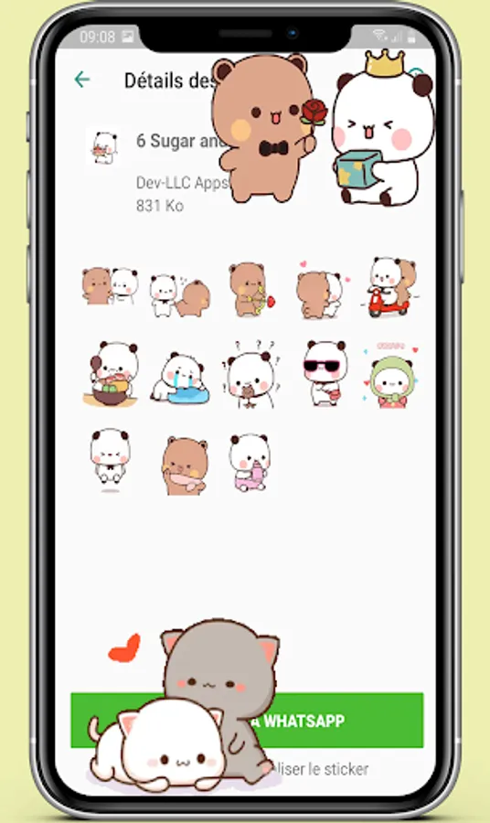 animated Sugar and Brownie Stickers collections in this app contains a lot of animated stickers sush as moving happy cat stickers, gif mochi cat stickers and animated peach cat stickers also angry cat stickers animated in addition to animated cute mochi cat stickers for WhatsApp.
