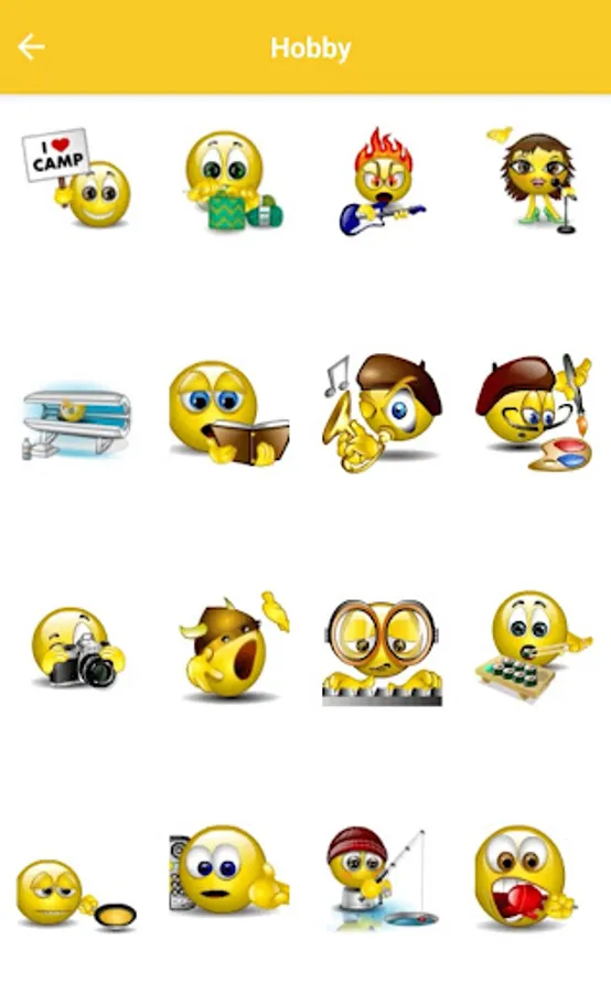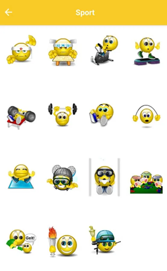 👉 Different categories including Love, Anger, Holidays, Everyday, Animals, Sport, Funny and much more.