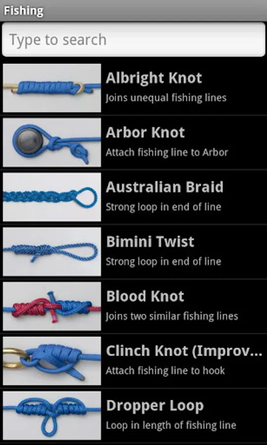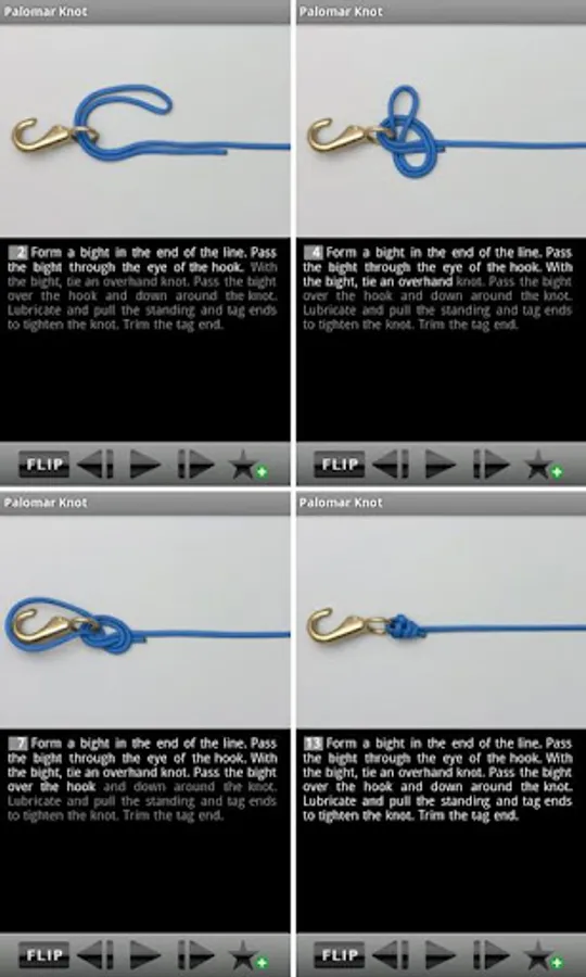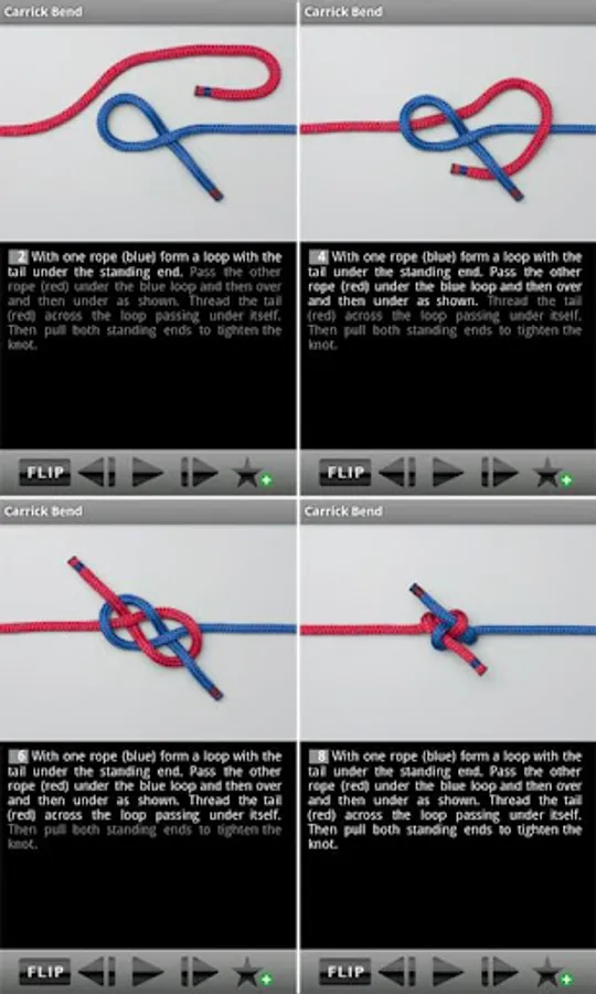 Watch knots tie themselves in simple step-by-step image animations, or click frame-by-frame (at your own speed) as you learn to tie each knot - using the NORMAL or MIRROR orientation (great for left-handers). When viewing a knot, simply tap INFO (top right) to get detailed descriptions about each knot's correct use, advantages & disadvantages, safety considerations, similar knots, alternatives, and other information.