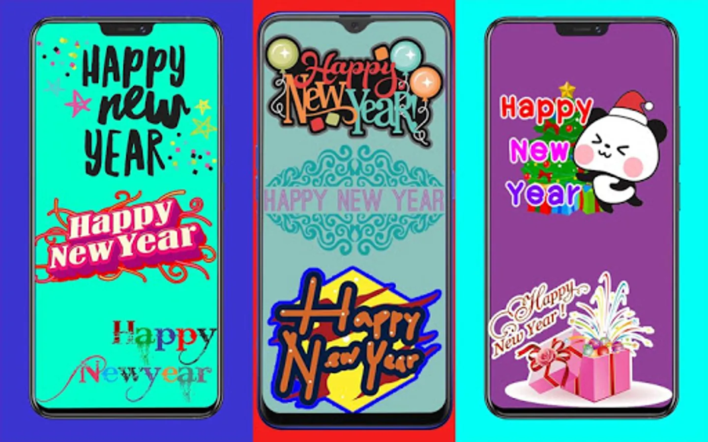 Happy new year stickers and wallpaper you can set as wallpaper.