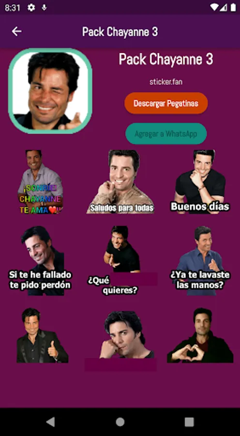 Download the best Stickers of the singer Chayanne, free for WhatsApp. You can also find many animated Chayanne stickers ready for you to share with all your friends.