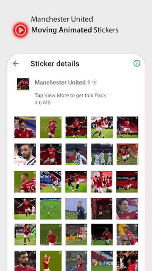 Note: Animated Sticker packs are not supported yet for Official WhatsApp but it will soon. Animated Manchester United Stickers for GB WA. The Manchester United Animated Sticker app provides the champion Manchester United fans with the latest animated moving stickers for GB WhatsApp. Manchester United Players Stickers; David de Gea, Dean Henderson, Harry Maguire, Victor Lindelöf, Eric Bailly, Marcos Rojo, Axel Tuanzebe, Alex Telles, Luke Shaw, Aaron Wan-Bissaka, Nemanja Matic, Paul Pogba, Donny van de Beek, Scott McTominay, Bruno Fernandes, Marcus Rashford, Mason Greenwood, Anthony Martial, Edinson Cavani. Now you can have your favorite soccer stickers and have a good time sending them to your friends.
