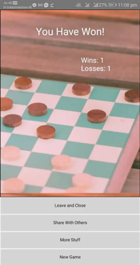 Checkers is a simple to pick up abstract strategy game. With a just a couple of rules, it is far more easier to play than Chess although the same board can be used to play it. Expect to finish the game quickly too. Game-play is simple and there is only one kind of piece on any side (except for king pieces that may appear later when the game is about to end). The pieces look like carom pieces. There is only one kind of move for any piece and all movement can only happen on the dark squares - which means a swift game-play. You move enemy pieces out of the board by jumping over them (not landing upon them as in Chess).