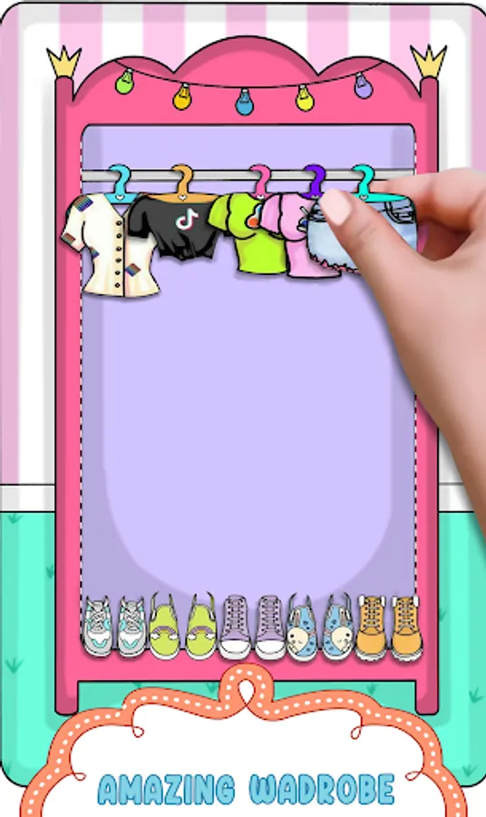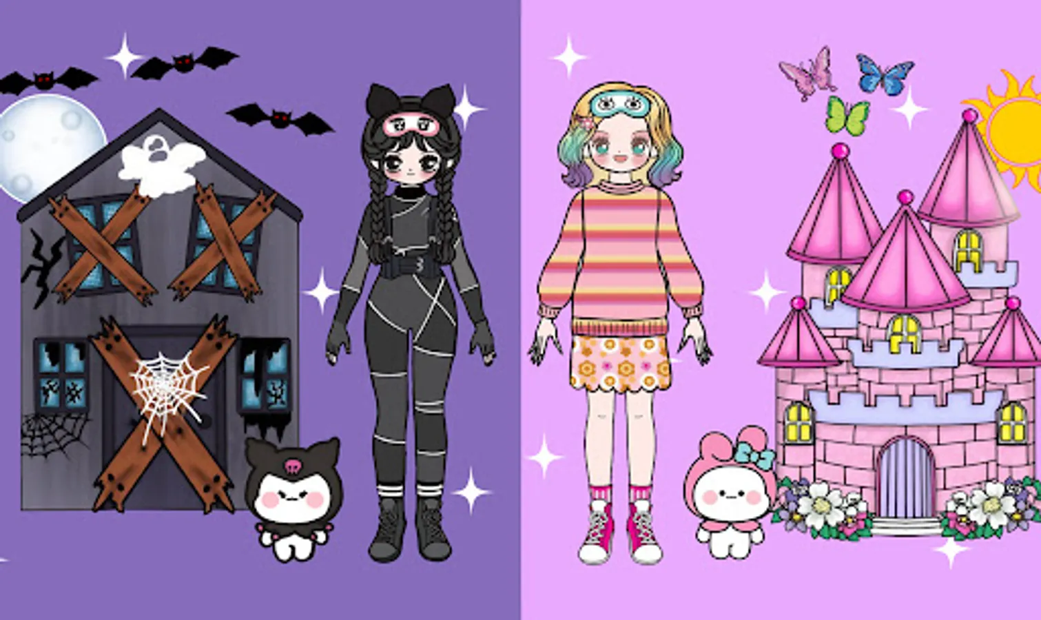 HD graphics and environment in sticker dolly dressing game, chibi doll simulator.