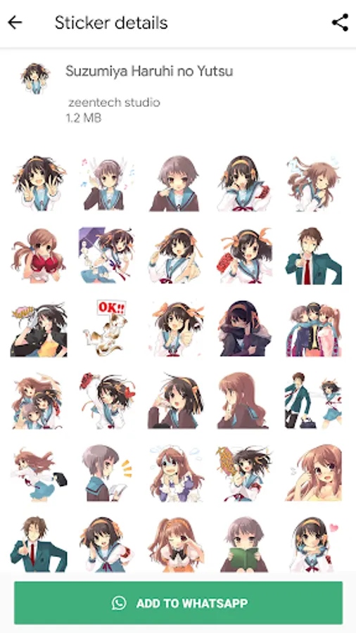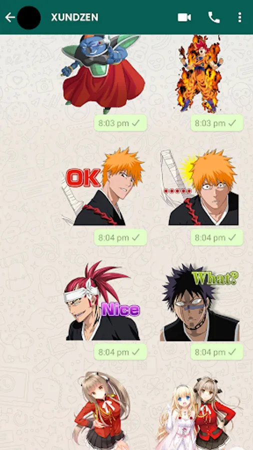 "Anime Stickers for WhatsApp" Allows you to avoid boring WhatsApp conversations with your Otaku friends and carry you the best way to share your favorites anime stickers packs and different way to prompt your feelings via the best Anime stickers through WhatsApp.