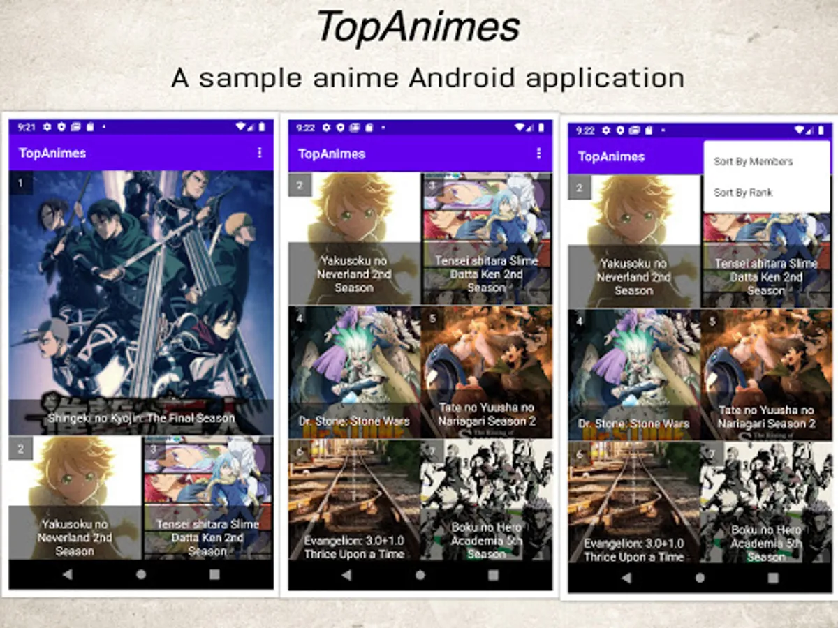 TopAnimes is a sample anime Android application 📱 built to demonstrate use of Modern Android development tools. Dedicated to all Android Developers with ❤️.