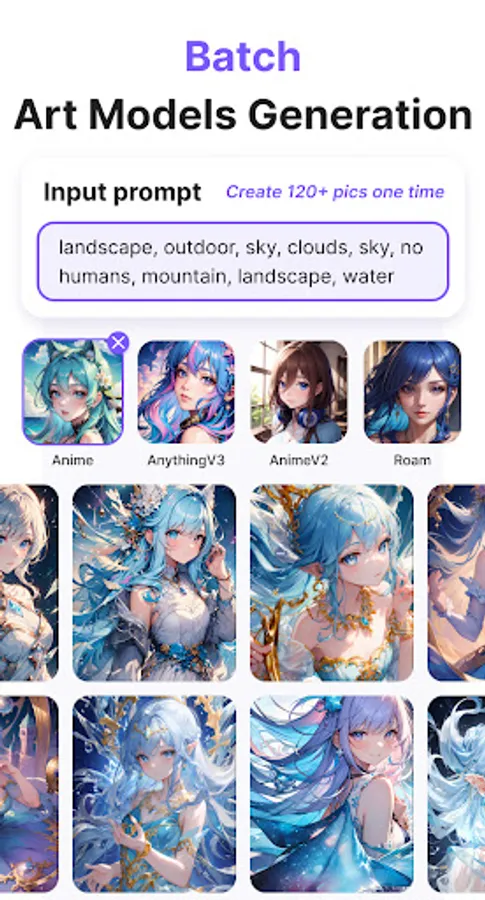 Type any words or prompts, select a model from over 20, then mix and match styles to generate dreamy and imaginative artworks.