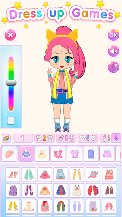 * Dress Up Games - match and mix more than 5000+ items: hairstyle, clothes, hats, accessories, freckles, moles, blush, wings, tails. Download additional packs like: k-pop, anime girls, boys, baby, food pack, kawaii doll, halloween, etc. Then add gacha games items that you won, customize color of clothing, full body and you get almost countless dress up items to play with your yoyo doll! Wow!