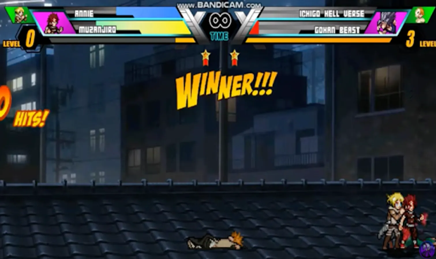 Mugen Anime Fight : Tons and tons of different franchises battle it out in the biggest ultimate game ever! When Street Anime Fighter All Stars and Super Smash Bros isn't enough. The ultimate tournament begins to claim winners as the ultimate brawlers of all time! Some in it to win it, Some just fight for sport and some... don't know how they got here.