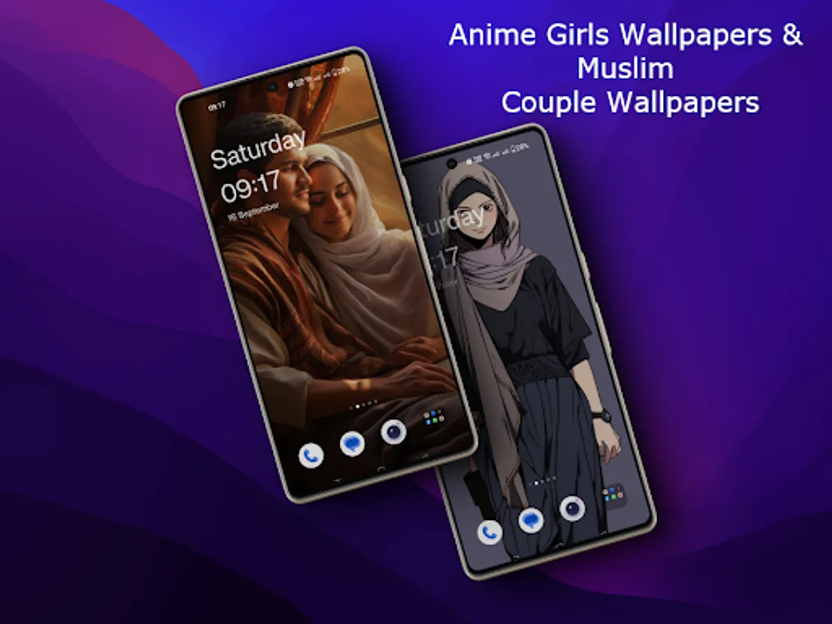 Enhance the aesthetics of your device and celebrate the beauty of hijab fashion and the warmth of Muslim relationships with "Anime Hijab Muslim Girl Wallpapers."