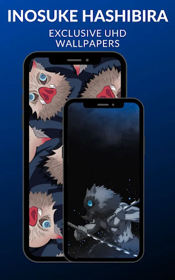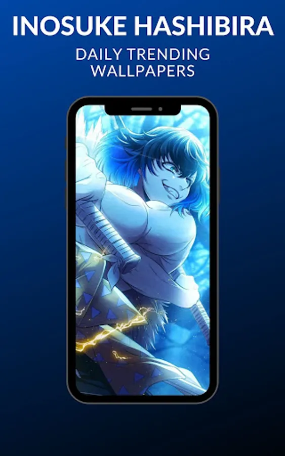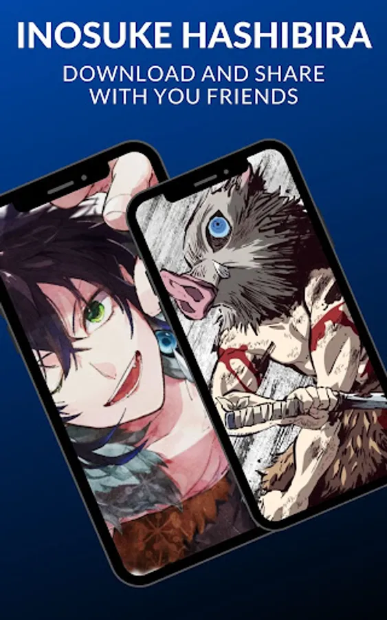 Inosuke Hashibira is a young man of average height and pale complexion with an extremely toned and muscular build for Inosuke Hashibira age, possessing large, defined muscles most notably over Inosuke Hashibira stomach and arms. In sharp contrast to this, Inosuke Hashibira has an incredibly pretty and feminine face, with large, wide eyes that are framed by an array of long eyelashes, their irises a dark to soft pale green, thin eyebrows and what could be a small, well-mannered mouth. Inosuke Hashibira thick, black hair reaches just past Inosuke Hashibira shoulders, fading into blue at the tips and forming an unruly and uneven fringe that falls just above Inosuke Hashibira eyes, puffing out before curving and thinning towards Inosuke Hashibira forehead.