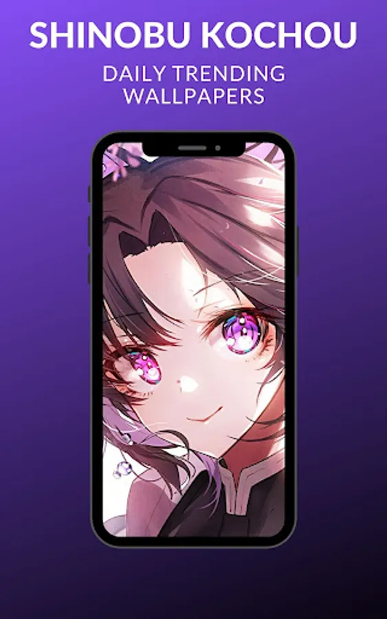 Shinobu Kochou is a petite young woman with a pale complexion and large, compound-like eyes that lack pupils, only a haze of gradient purple, making Shinobu Kochou eyes appear similar to those of insects. Shinobu Kochou has shoulder-length wavy hair that fades from black into dark purple, usually styled at the back of Shinobu Kochou head into a flat 'yakai-maki' bun, fastened with a white and purple butterfly ornament. Shinobu Kochou has center-split, ear-length, voluminous curtain bangs that flow down to frame the sides of Shinobu Kochou face, with two slightly thinner chin-length locks of hair in front of Shinobu Kochou ears below them. Shinobu Kochou is short in height and has been described as having a small and weak-looking build, which is later reinforced by Shinobu Kochou mentioning that Shinobu Kochou does not possess enough physical strength to decapitate a demon as the other Hashira do. According to Zenitsu Agatsuma, Shinobu Kochou is very attractive and could easily make a living on Shinobu Kochou looks alone.