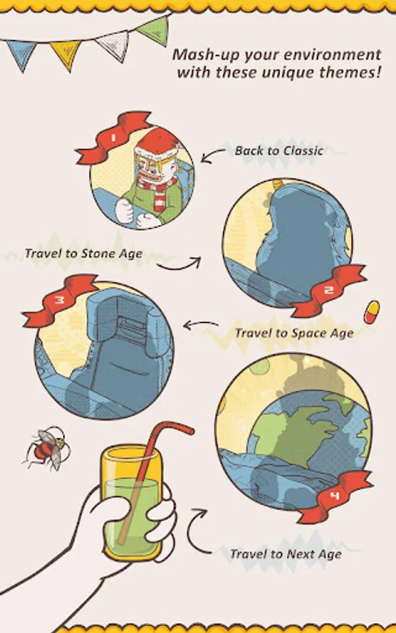 - Hilarious, unlockable costumes and environments, such as The Stone Age and The Space Age.