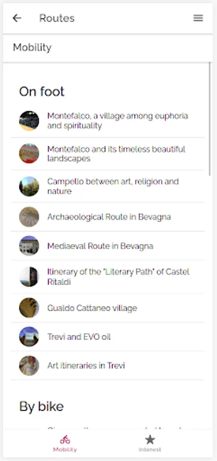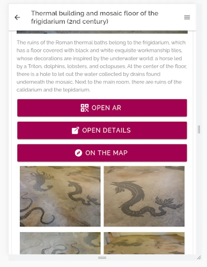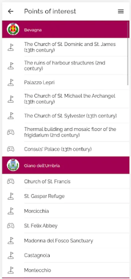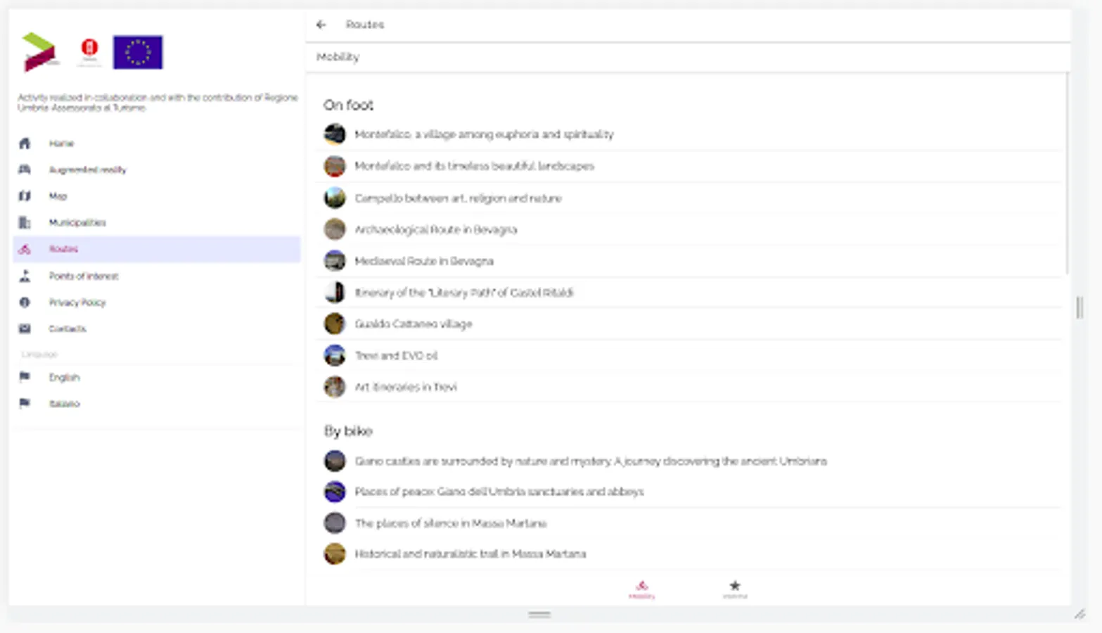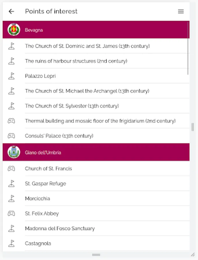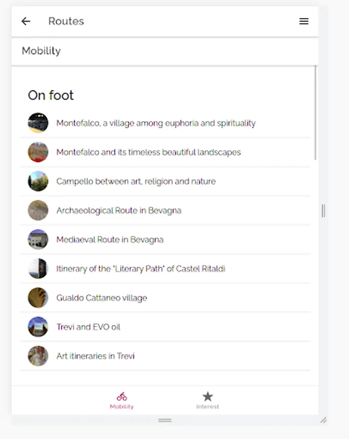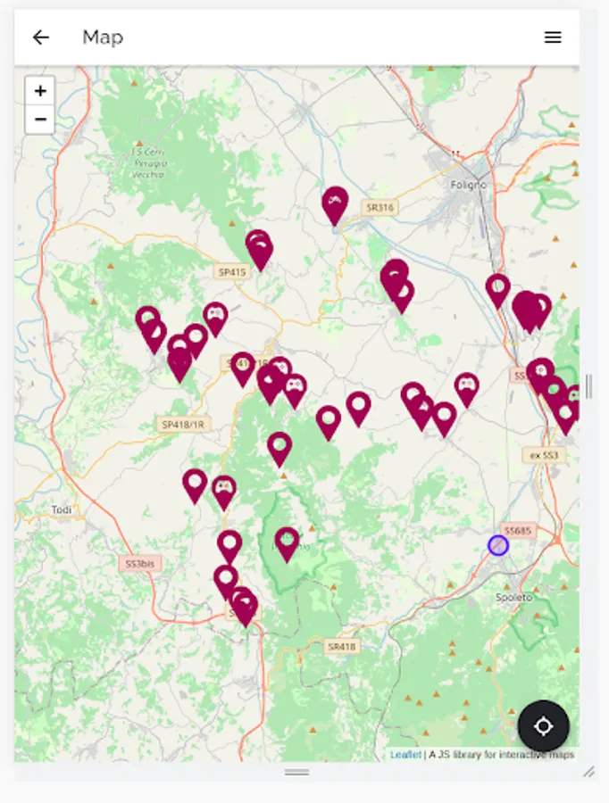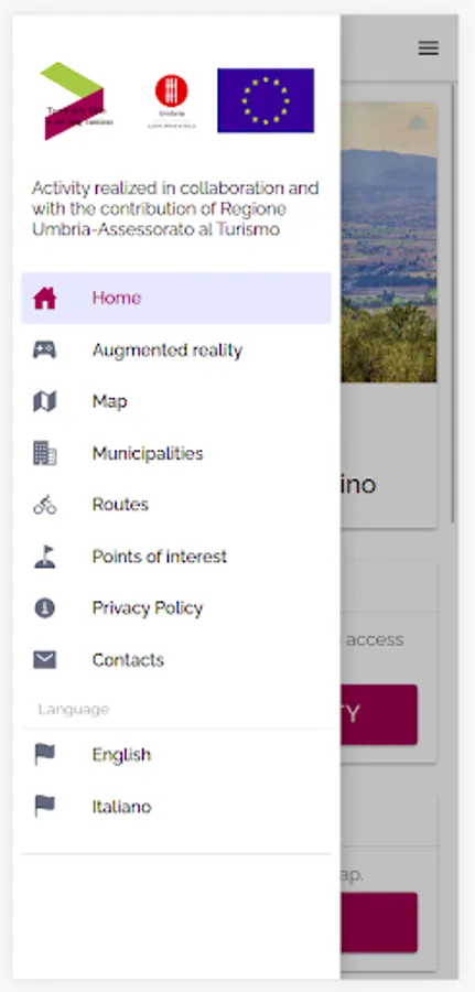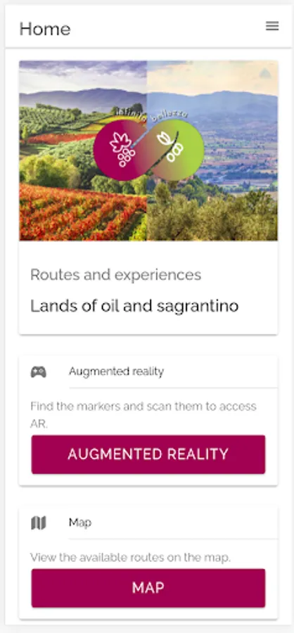 For each one of the eight municipalities of the Lands of Oil and Sagrantino, the app contains information on the main points of interest, and for some of them Augmented Reality contents.