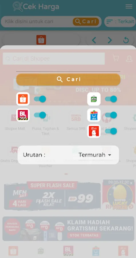 With just one type, you can get search results for the 5 biggest e-commerce sites in Indonesia, namely: