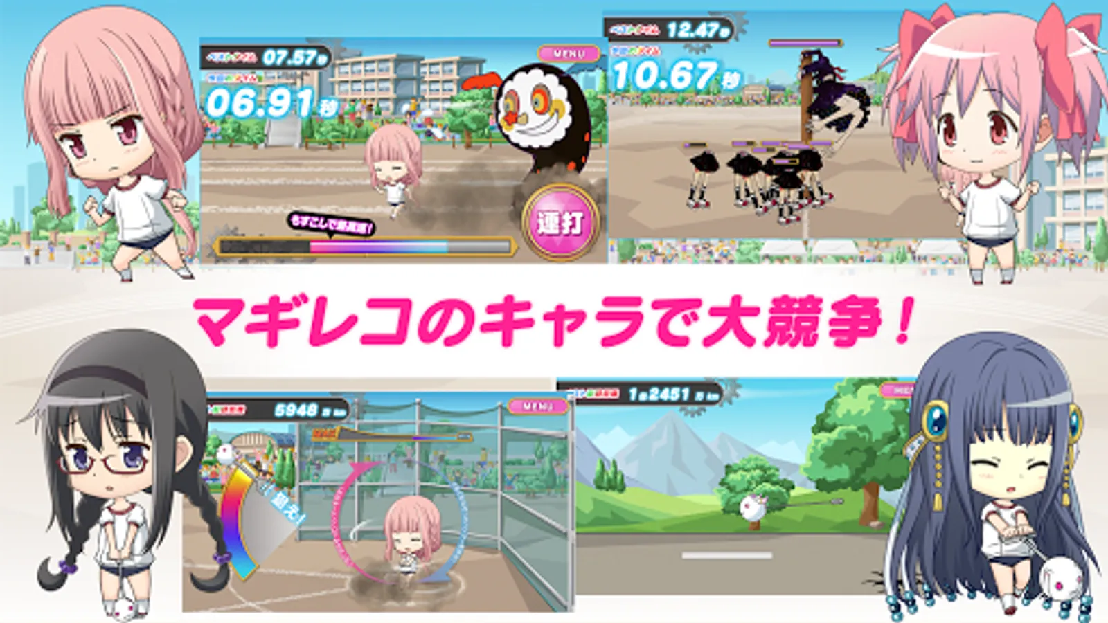 『円環の理 大運動会』は、『マギアレコード 魔法少女まどか☆マギカ外伝』に登場する魔法少女たちが3つのミニゲームでハイスコアを競い合います。