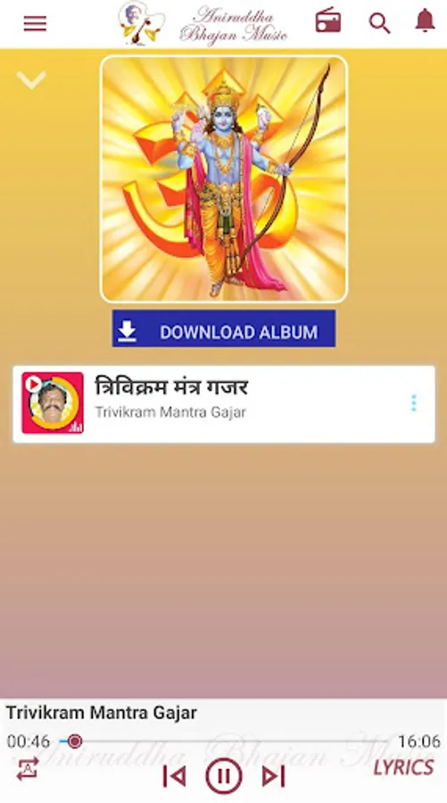 This "Aniruddha Bhajan Music" App is an official music app wherein you will be able to immerse yourself in 'Bhaktibhav Chaitanya' (Devotion Sentience) by listening to devotional songs composed on Sadguru Shree Aniruddha.