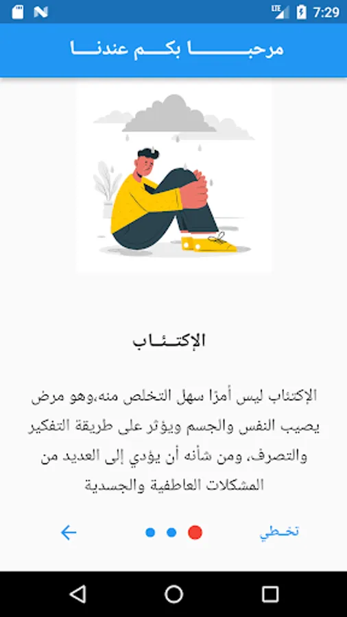 Depression is not an easy thing to get rid of. It is a disease that affects the soul and the body and affects the way of thinking and behaving, and it would lead to many emotional and physical problems. The symptoms of depression are different and varied; Because depression appears in different forms in different people., In our application you will find questions that will answer you about your psychological status. Do you, for example, suffer from depression and how serious is it?