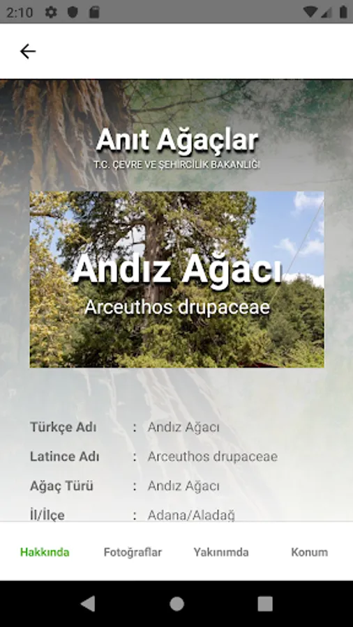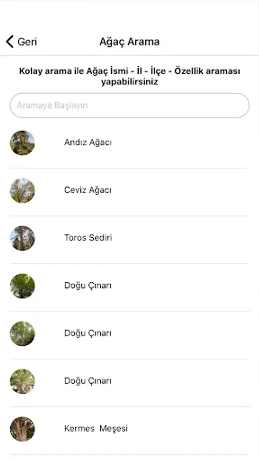 As of today, there are 9369 monumental trees throughout our country. In this study, it was tried to be promoted by selecting monumental trees that will set an example from all regions. It should be reminded that our other monumental trees, which cannot be included in the study, are extremely valuable and have their own dimensional and cultural characteristics.