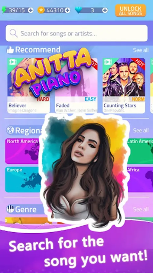 ANITTA Piano Tiles is a captivating and immersive music game available on the Google Play Store, meticulously crafted for fans of ANITTA songs and the enchanting world of ANITTA's music. This engaging game combines the spellbinding melodies of ANITTA's most popular tracks with the thrilling challenge of tapping piano tiles in perfect harmony.