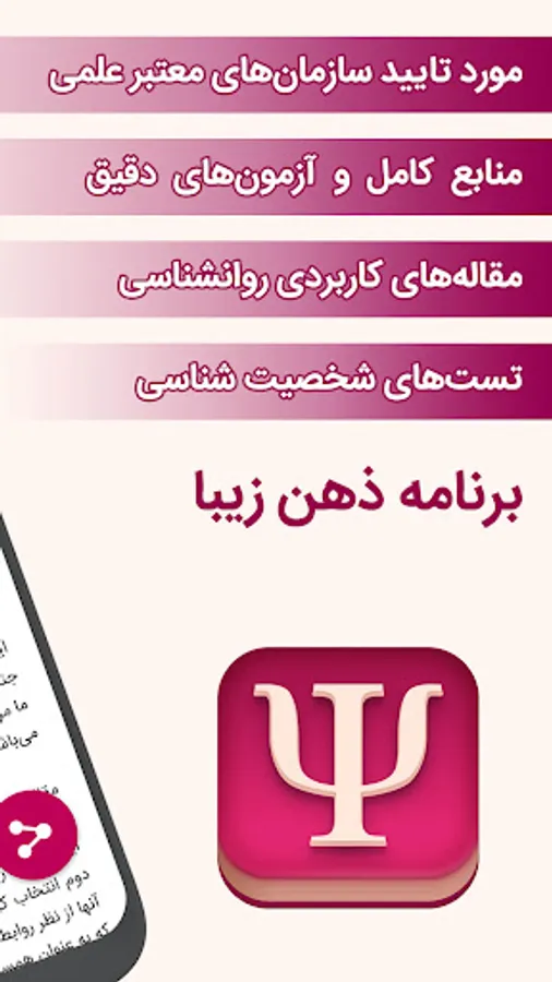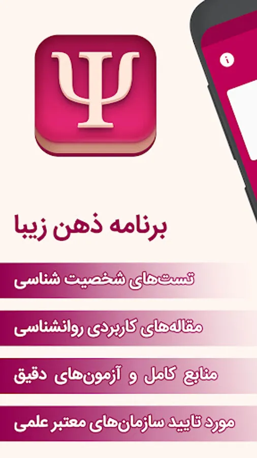 این برنامه علاوه بر تست روانشناسی اطلاعات بی نظیر و جامعی از شاخه های مختلف علم روانشناسی را در اختیار شما قرار می دهد.