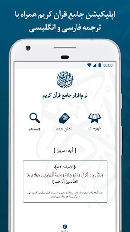 نرم افزار جامع قرآن کریم صوتی به همراه قرائت تمام 114 سوره قرآن برای شما ساخته شده است. با استفاده نرم افزار قرآن صوتی مهم نیست که چه زمانی از روز است یا چقدر مشغول هستید. در هر شرایط براحتی می توانید قرآن بخوانید. بهترین ترجمه قرآن فارسی و به زبان انگلیسی، برای درک آسانتر و وفادار به متن اصلی قرآن عربی را میتوانید در این برنامه به همراه داشته باشید.