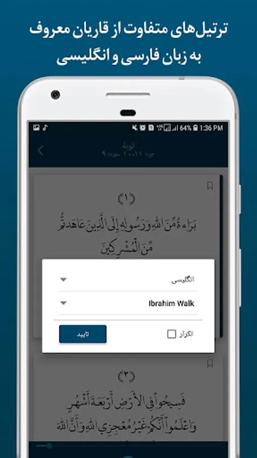 - قابلیط قطع قرائت صوتی و مطالعه قرآن کریم