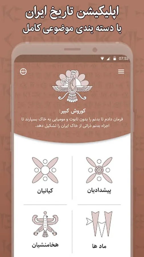 Also in this program, we have prepared the history of Iran from the beginning until now in another part of the speech assigned to Cyrus the Great for you who are interested. Cyrus the Great was the founder and first king of the Achaemenid Empire, which ruled over large areas of Asia for 30 years. He left the charter of Cyrus as a great historical heritage for Iranians. Cyrus has said beautiful words and phrases about women, Iran, love and life. In the History of Iran application from the beginning until now, we have collected the sentences of Cyrus the Great that have an official document for you.