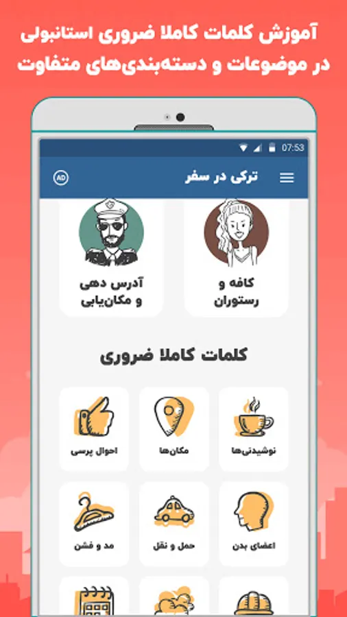 آموزش زبان ترکی استانبولی در سفر بهترین مرجع برای یادگیری لغات و اصطلاحات زبان ترکی استانبولی است. اگر قصد سفر به کشور ترکیه یا مهاجرت به کشور ترکیه را دارید برنامه آموزش زبان ترکی به فارسی در سفر را از دست ندهید.
