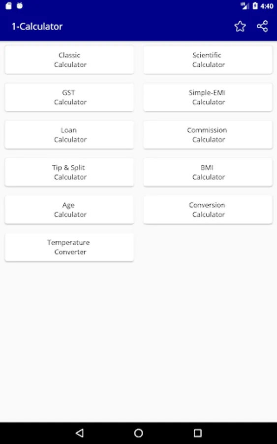 In 1-Calculator you will find multiple calculators all under one app. Below is the list currently we have in-app and we are adding more soon:-