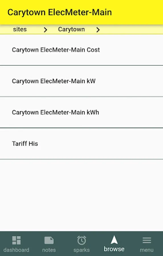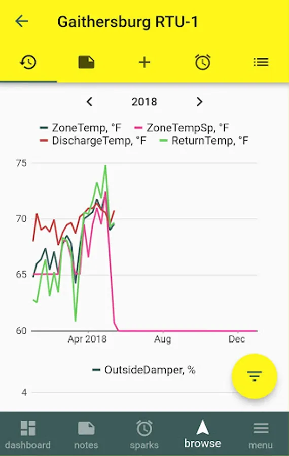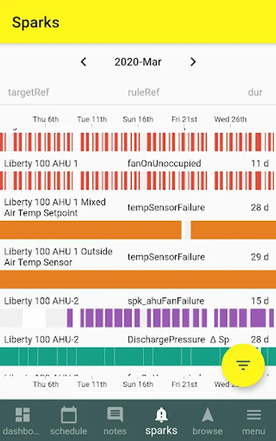 Consists of multiple views such as notes, sparks, history, browser for site - equipment - points and their haystack tags.