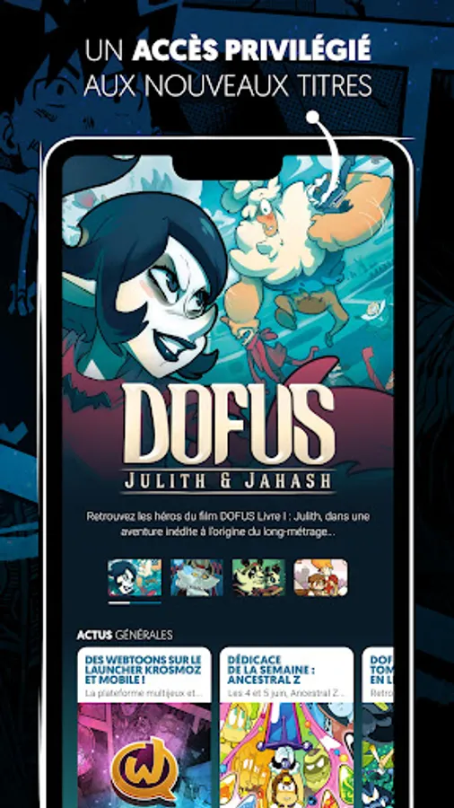 With KROSMOZ, you can watch our series of webtoons inspired by the Krosmoz, the DOFUS and WAKFU universe everywhere: episodes adapted from Ankama manga, comics and comics for your tablet and smartphone!
