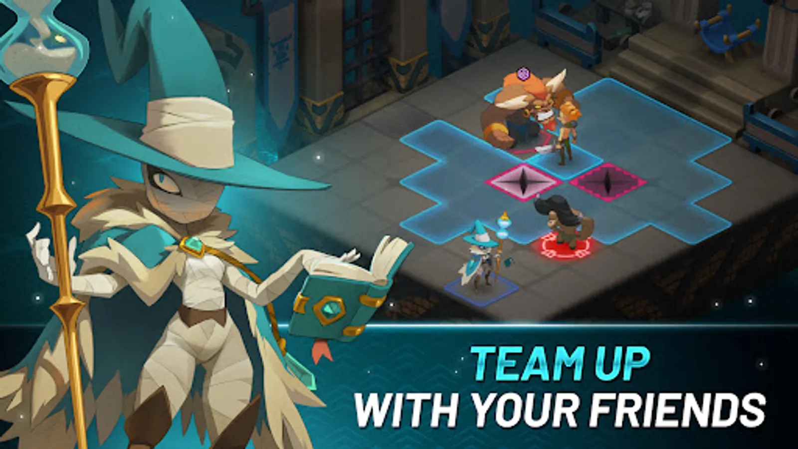 Master the elements, cast powerful spells, summon mythical companions to your side, each with their own mechanics. Confront your enemies in close combat or from a distance in mythical fast-paced, turn-based tactical battles as a solo, duo, or trio and win all kinds of prizes.