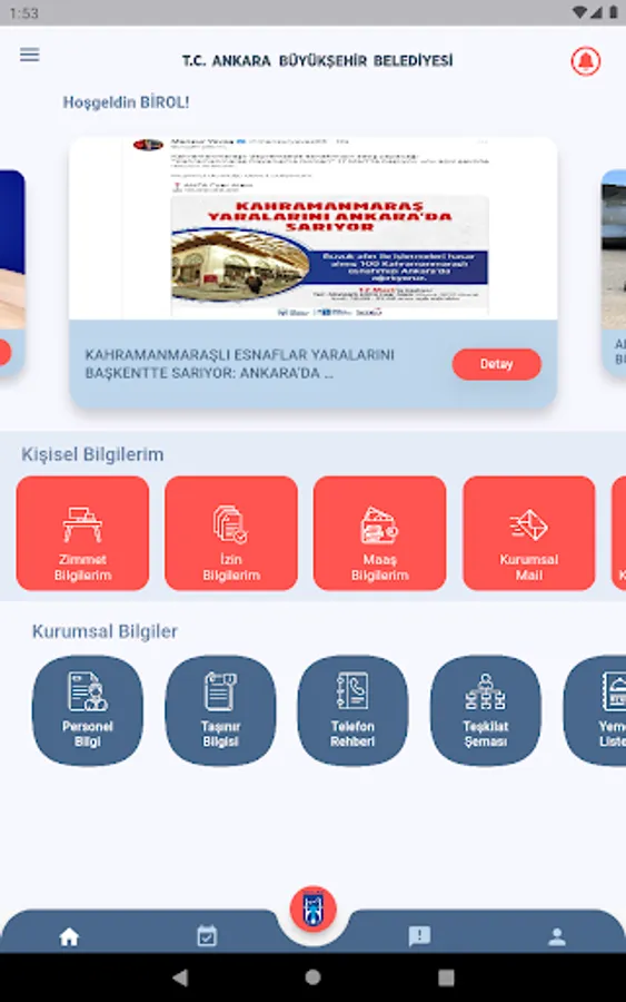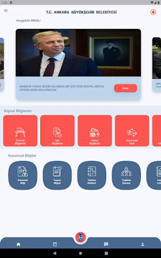 It is the official mobile application prepared for Ankara Metropolitan Municipality personnel, where users can see their personal and corporate information.