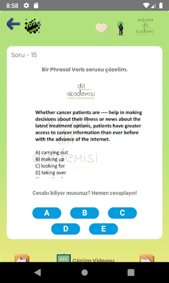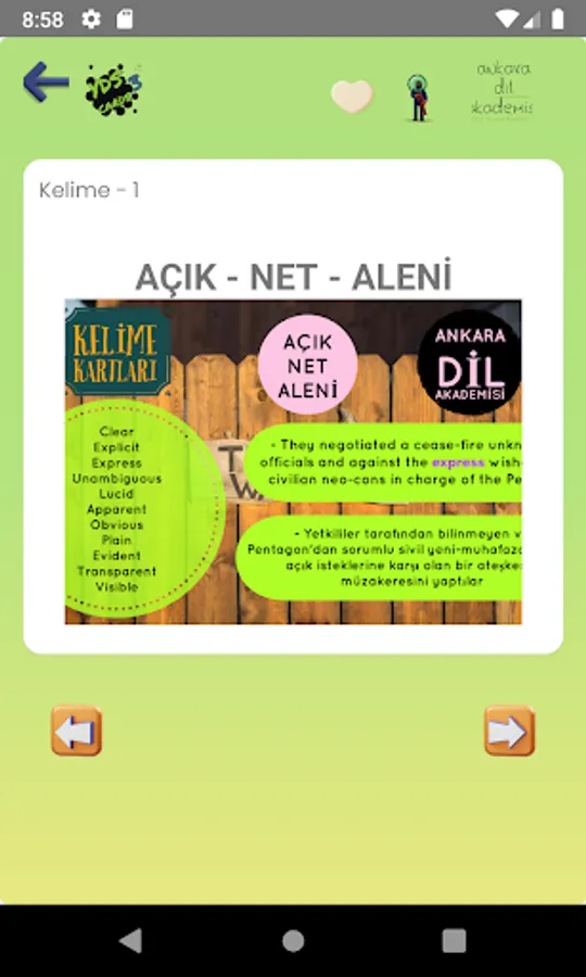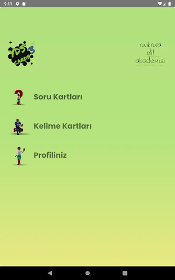 Ankara Academy of Language Share it via social media, video parsed questions, word cards and other materials in applications where it is collected.