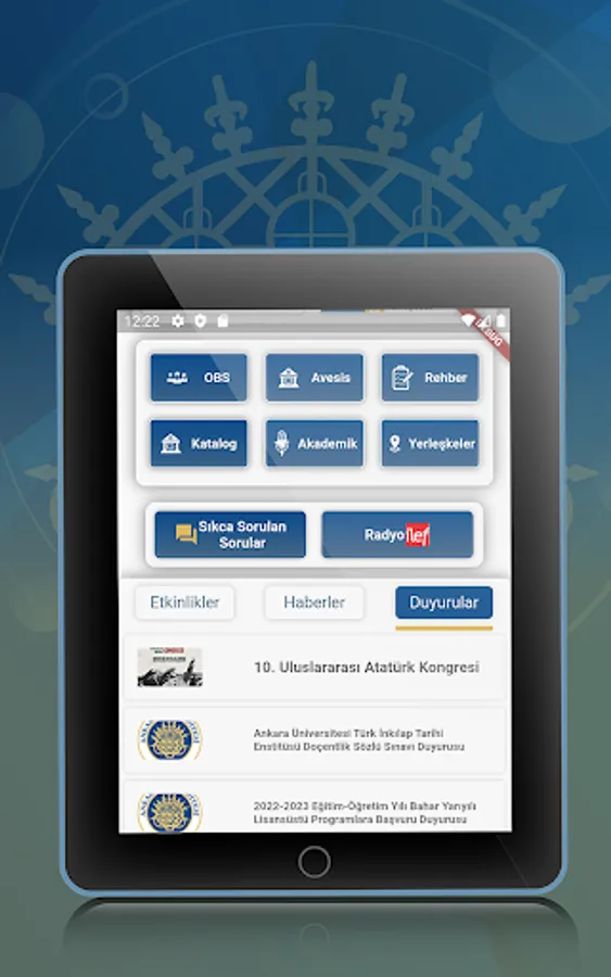 Founded on 13 June 1946 as the First University of the Republic of Turkey, Ankara University is one of the leading universities in our country and in the world. Basic information about the university, OBS and Avesis can be accessed from this application.