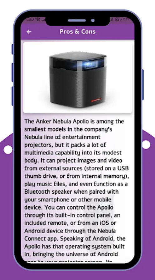 An app Anker Nebula Apollo that gives you information about Anker Nebula Apollo