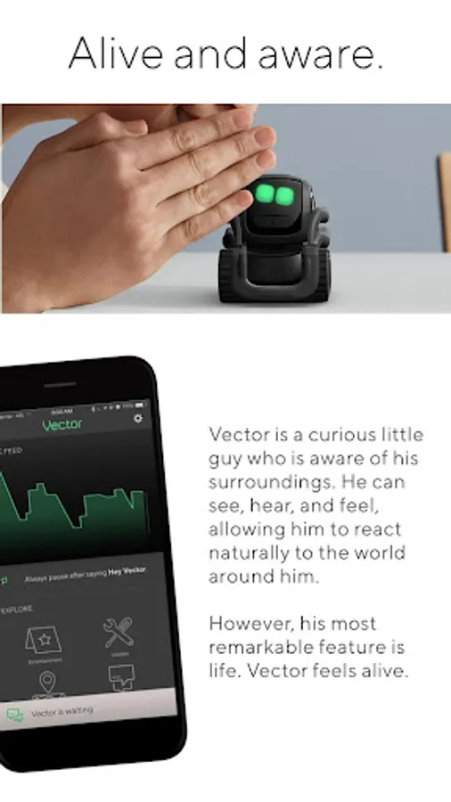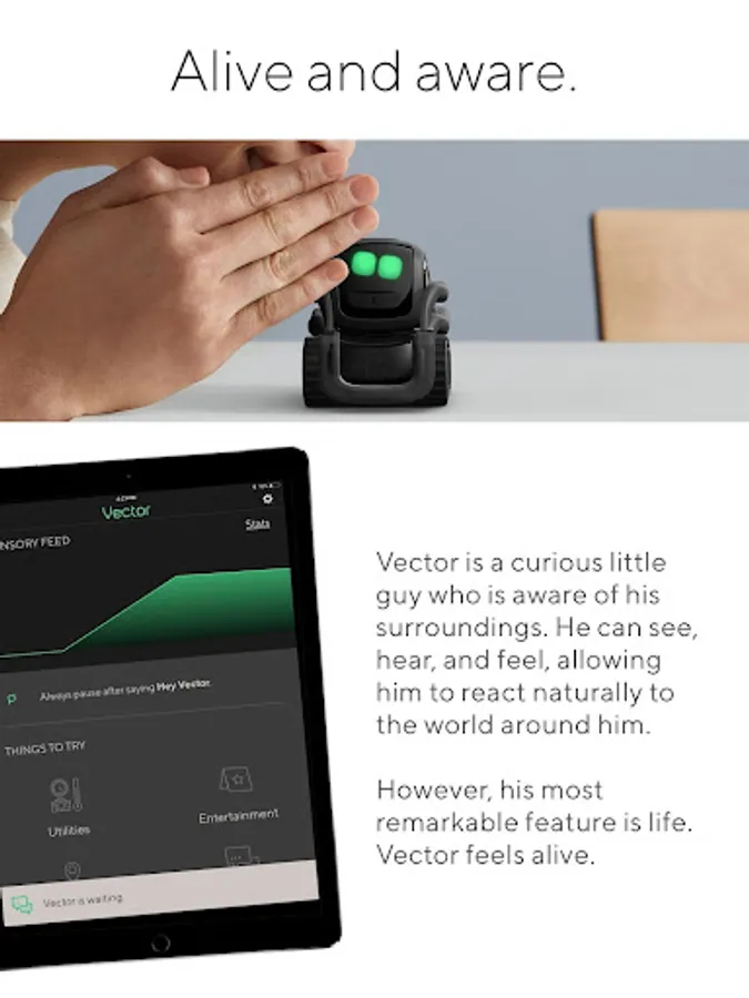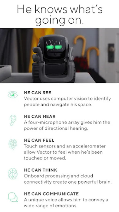 Say hey to Vector, your first home robot. Seriously, say “Hey Vector.”— He can hear you.