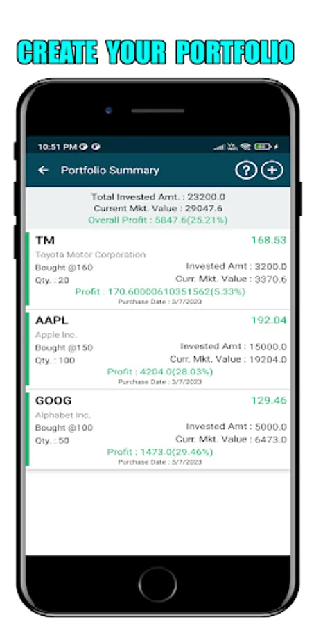 - Create your own customized portfolio as a personal tracker to add the ticker and monitor your investment of favorite stocks.