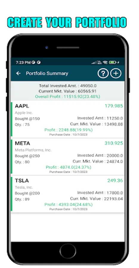 - Create your own customized portfolio as a personal tracker to add the ticker and monitor your investment of favorite stocks.