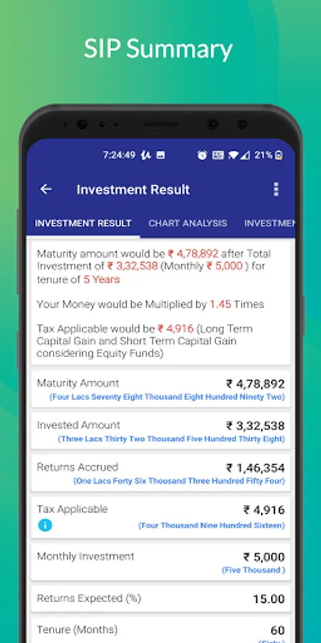 3) Analyse your SIP - This is first calculator on any app or web. It helps in analysing the SIP while entering the Monthly investment , Current value of investment & SIP start date.