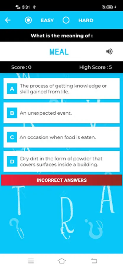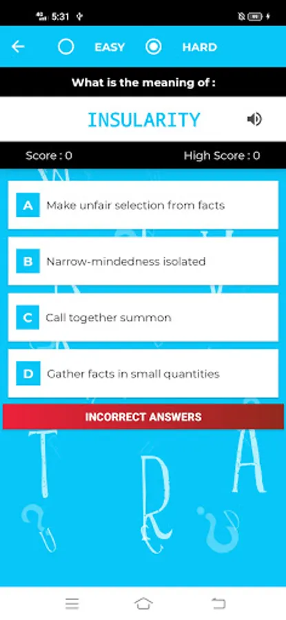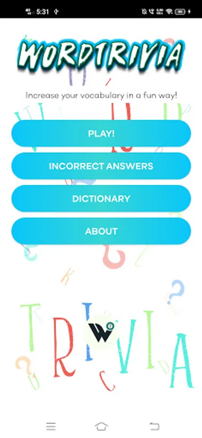 WordTrivia is a great way to improve your vocabulary for FREE. It has two modes : Easy & Hard. The EASY mode is for people who want to improve basic vocabulary and the HARD mode is for people who want to learn new complex words which also comes handy for competitive exams! This app also comes up with an OFFLINE DICTIONARY and a pronunciation option as well!
