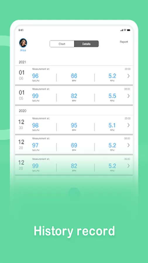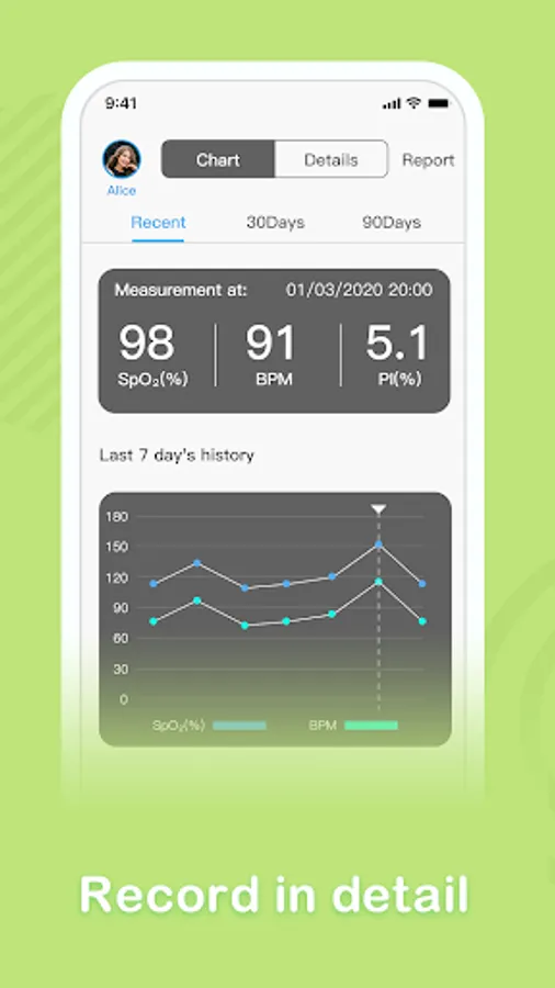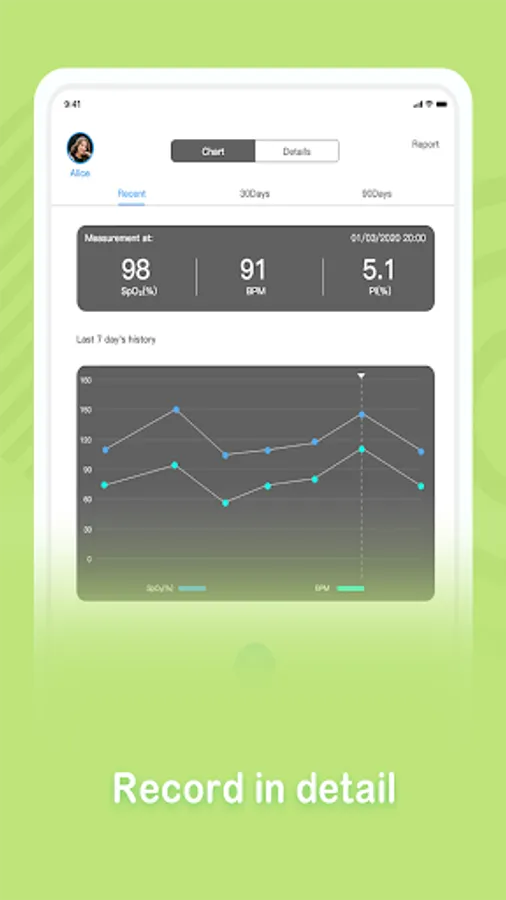This is a personal health management service for measuring oxygen saturation (SpO2). It would help if you used it with a Bluetooth pulse oximeter.