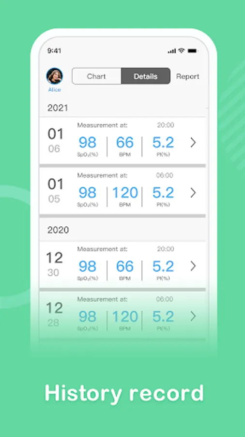 The application can display the measurement results after connecting the Lpow A340B Pulse Oximeter:blood oxygen saturation (SpO2), pulse rate (PR), and perfusion index (PI) ; it is free, and you can use the app to display, record, and view your measured data. You can also click any point in the historical trend to learn more about your measurement data and manage your health status.
