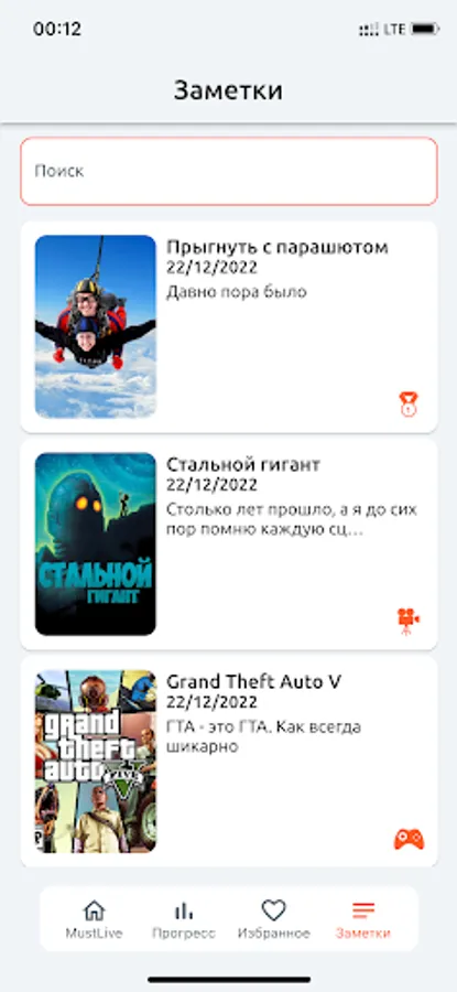 MustLive is an application that brings together the most important things in a person's life. Having closed all the gestalts, you can say with confidence that you have done EVERYTHING in this life!