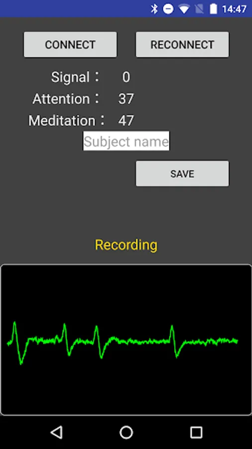 The data that can be acquired are the recording time, the current date and time, UNIXTIME, Attention, Meditation, LowAlpha, HighAlpha, LowBeta, HighBeta, Delta, Theta, LowGamma and MiddleGamma.