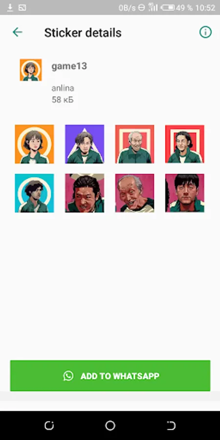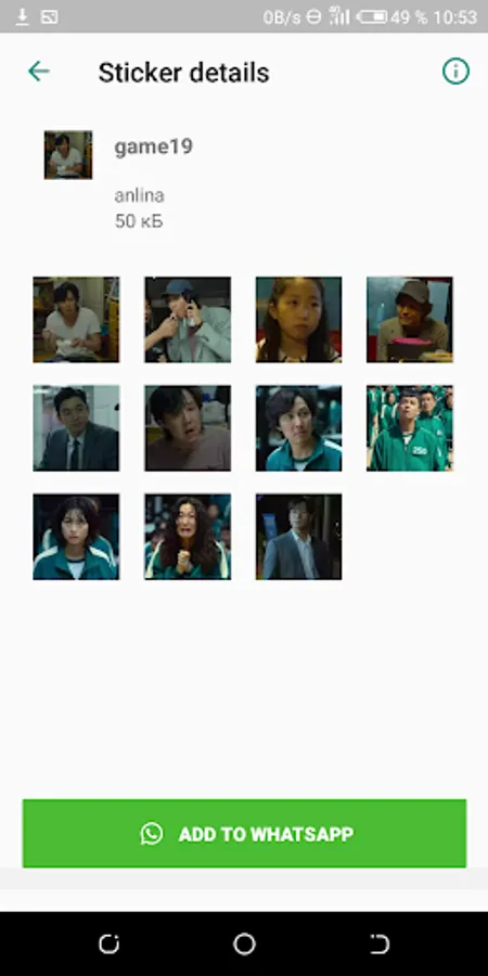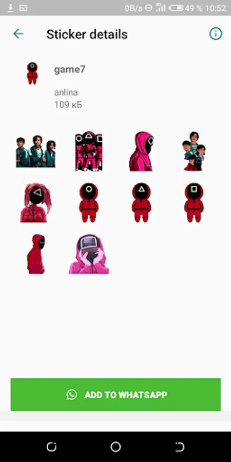 There are a lot of WAStickerApps stickers and they will immerse you in the atmosphere of the legendary Korean TV series. The Squid Game stickers are very easy to add: