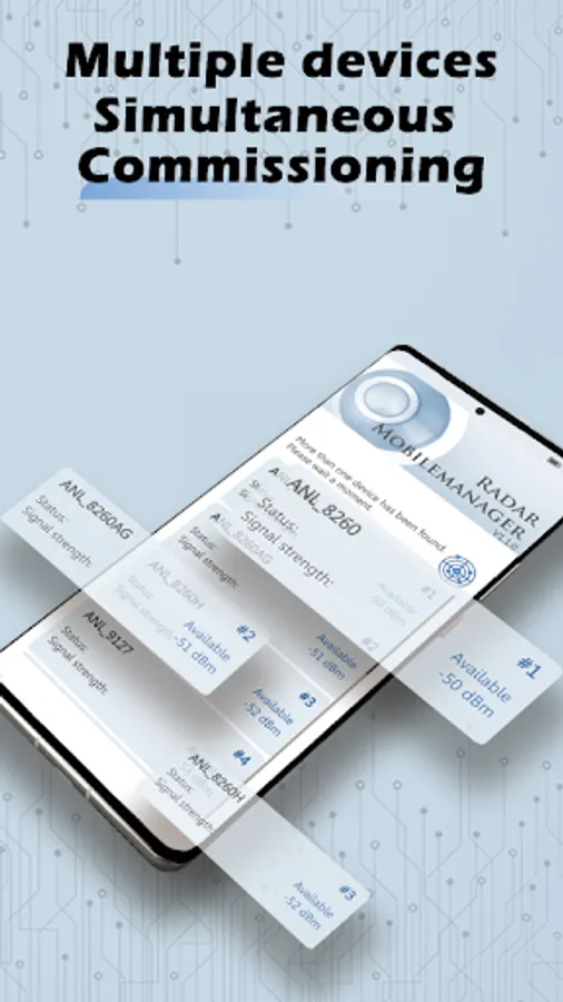 The MOBILEMANAGER app allows remote wireless connection to the radar device via Bluetooth, allowing you to connect to the radar device remotely using a Bluetooth-enabled phone or tablet.